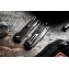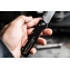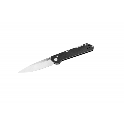 A stunning German knife that reflects the Japanese concept of Kihon. That's the mastery of combining form with function. You will notice the lockback button, thumb stud, and the pocket clip (tip up). The black coated stainless steel handle creates the backdrop to the functional silvery looking parts.