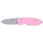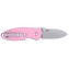 The CRKT Rose Quartz Squid with a button locking mechanism. It easily opens with one hand, using the thumb stud paired with IKBS™ ball bearings in the pivot.