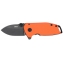 The Orange and smaller EDC version of the CRKT Squid. Only 2.93" closed and 2.20 ounces, but it still has a pocket clip, flipper, and thumb stud.